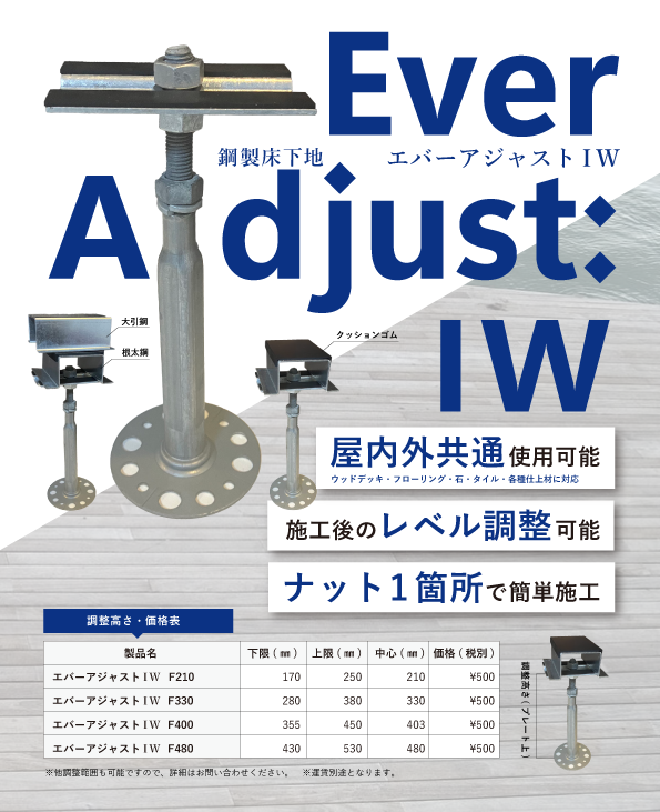 「エバーアジャストIW」に加えて、大引鋼と根太鋼も販売しています。